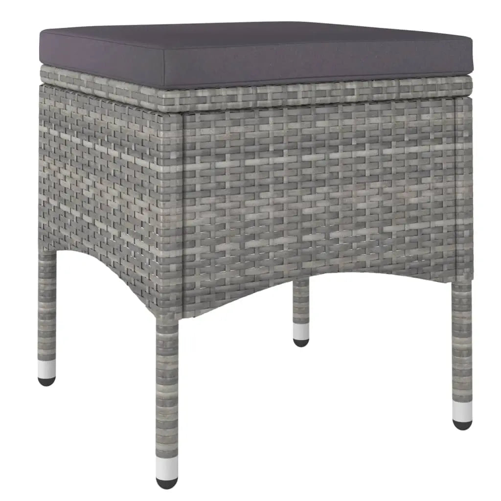 This stylish garden dining set provides you with a leisurely and comfortable time with your family and friends. Featuring a powder-coated steel frame covered with weather-resistant PE rattan with UV protection, the table and chairs are durable and stable. Designed with curved backrest and armrest, the chairs provide you with comfort. The cushions are included for added comfort and the zipped cover is removable for easy washing. The tabletop is made of reinforced tempered glass in strong support, which is easy to clean and maintain. The two footrests also give you extra seating areas. Additionally, the lightweight construction makes each piece easy to move, rearrange and transport. Note: In order to extend the life of your outdoor furniture, we recommend you to clean it regularly and do not leave it outdoors without protection unnecessarily.Clean: Use a mild soap solution.Storing: If possible, store in a cool, dry place indoors. If the product is stored outdoors, protect it with a waterproof cover. Wipe and dry the excess water or snow from flat surfaces after a rain or snowfall. Allow sufficient air circulation to avoid moisture-related damage.
